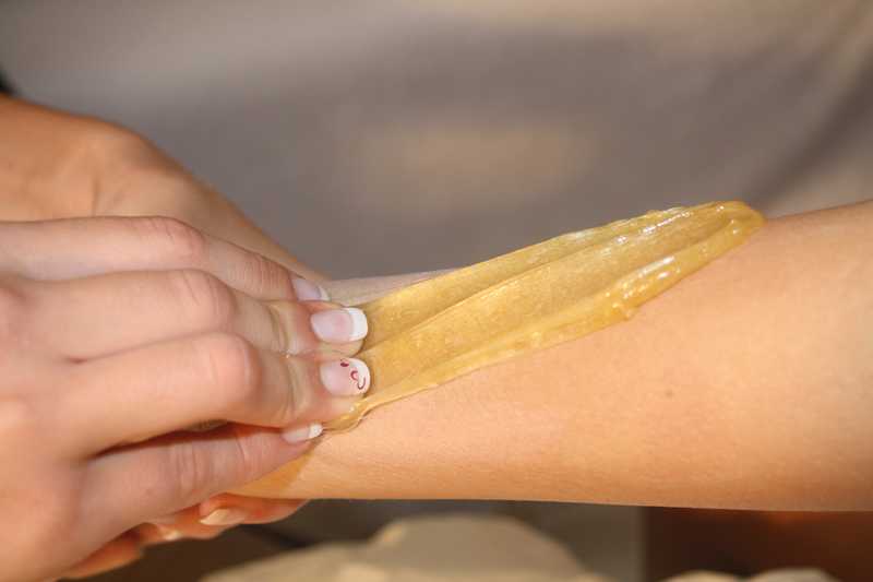 découverte du caramel et mise en pratique de la technique d'épilation sur les jambes et aisselles du modèle